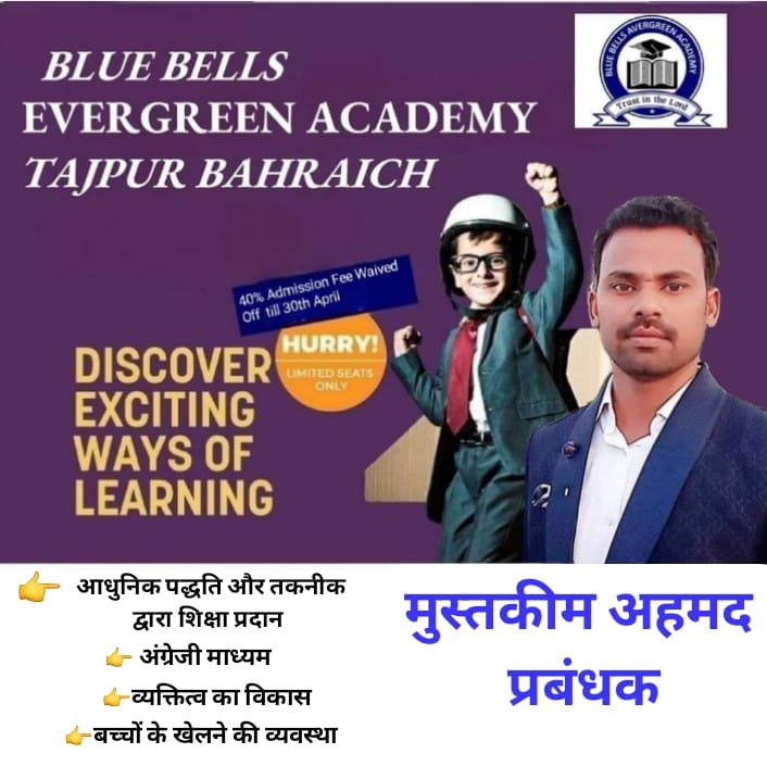 अंग्रेजी माध्यम से शिक्षा प्रदान करने वाला क्षेत्र का पहला विद्यालय : BLUE BELLS EVERGREEN ACADEMY TAJPUR, BAHRAICH