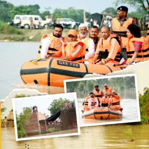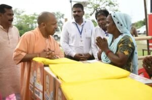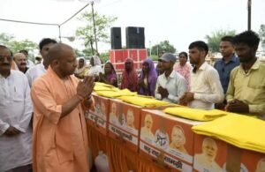 लखीमपुर खीरी में सीएम योगी ने किया बाढ़ का हवाई सर्वे : पीड़ितों में बांटी राहत सामग्री