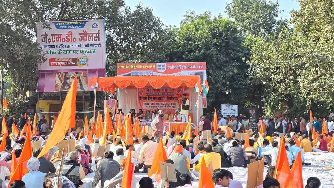 हिन्दू बोले-एक रहेंगे तो सेफ रहेंगे बांग्लादेश में हिंदुओं के खिलाफ हो रहे अत्याचारों के विरोध में आज जनपद बस्ती में भी हिंदू संगठनों ने बांग्लादेश हिन्दू रक्षा समिति के बैनर तले धोर विरोध प्रर्दशन किया जहां लाल बहादुर शास्त्री चौक परिसर में एकत्र होकर हजारों की संख्या में लोग इस विरोध प्रदर्शन में शामिल हुए। रैली में समस्त हिन्दू संगठनों के कार्यकर्ताओं ने हिस्सा लिया। रैली हिन्दू समाज द्वारा महामहिम राष्ट्रपति को संबोधित एक ज्ञापन जिलाधिकारी को सौंपा, जिसमें मांग की गई कि बांग्लादेश में हिंदुओं के साथ हो रहे अत्याचार को अंतरराष्ट्रीय मंच पर उठाया जाए और इसे रोका जाए।
