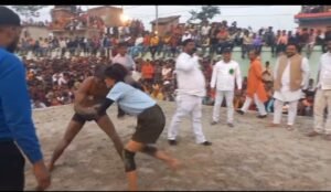 वही महिला पहलवान ने पुरुष पहलवानों से कुश्ती लड़ कर पुरुष पहलवान को हरा दिया महा दंगल का दूसरा मुकाबला एवं अंतिम मुकाबला बृहस्पतिवार को होना है नहीं इस महा दंगल को देखने के लिए हजारों की तादाद में महिला पुरुष बच्चे और नौजवान टक टकी की लगाए बैठे रहे