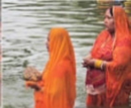 - इसके पश्चात् किसी नदी में कमर तक पानी में खड़े होकर सूर्य देव को अर्घ्य देते हैं।