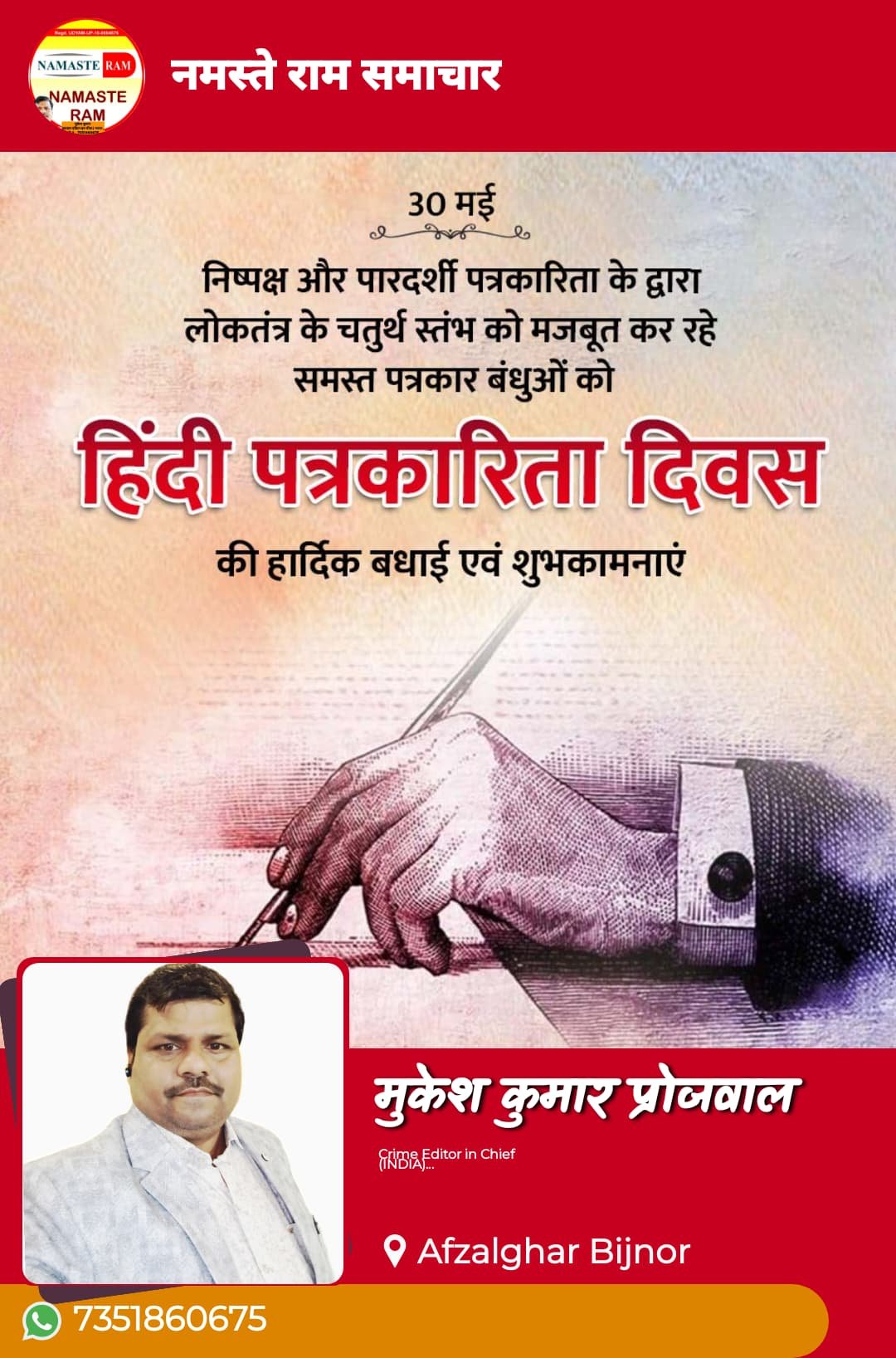 💢 सभी पत्रकार बंधुओं और पाठकों को हिंदी पत्रकारिता दिवस की हार्दिक शुभकामनाएं। 💐🙏🙏💐