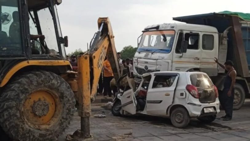कौशांबी में भीषण सड़क हादसा , कार और डंपर की भिड़ंत, चार की मौत