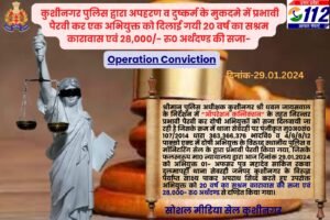 कुशीनगर : “ऑपरेशन कन्विक्शन” के तहत कुशीनगर पुलिस द्वारा अपहरण व दुष्कर्म के मुकदमे में प्रभावी पैरवी कर एक अभियुक्त को दिलाई गयी 20 वर्ष का सश्रम कारावास एवं 28,000/- रु0 अर्थदण्ड की सजा