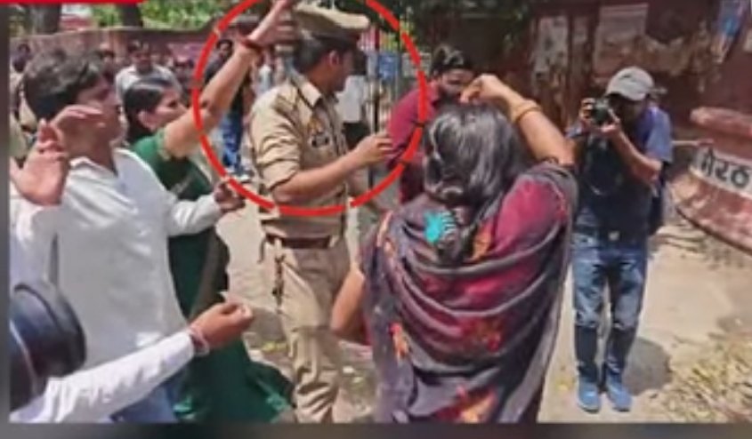 मेरठ में खाकी से बदसलूकी , प्रदर्शन के दौरान दरोगा की टोपी उतार कर भेंट की चूड़ियां , पुलिस लेगी एक्शन