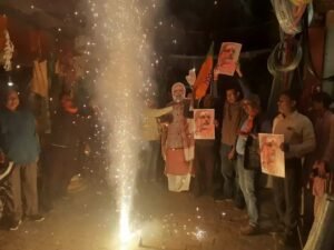 मोदी तीसरी बार वाराणसी से लड़ेंगे चुनाव, कार्य कर्ताओं में खुशी, ढोल नगाड़े पर झूमे आतिशबाजी कर मनाया जश्न।