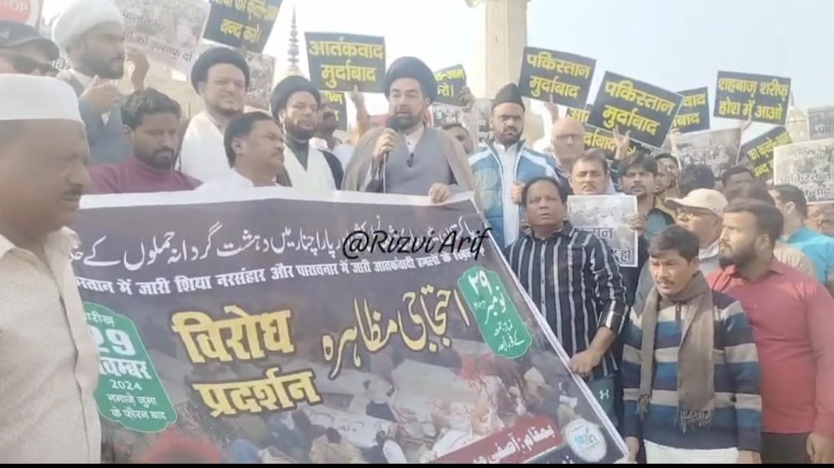 शियों के क़त्ले आम पर मौलाना कल्बे जवाद ने दिया बड़ा बयान। राजधानी लखनऊ के पुराने शहर में विश्वविख्यात बड़े इमामबाड़े में बाद नमाज़े जुमा शियों समुदाय ने पारा चिनार में हुआ आतंकी हमले एवं क़त्ले आम पर जोरदार प्रदर्शन कर पाकिस्तान मुर्दाबाद नारे लगाए।