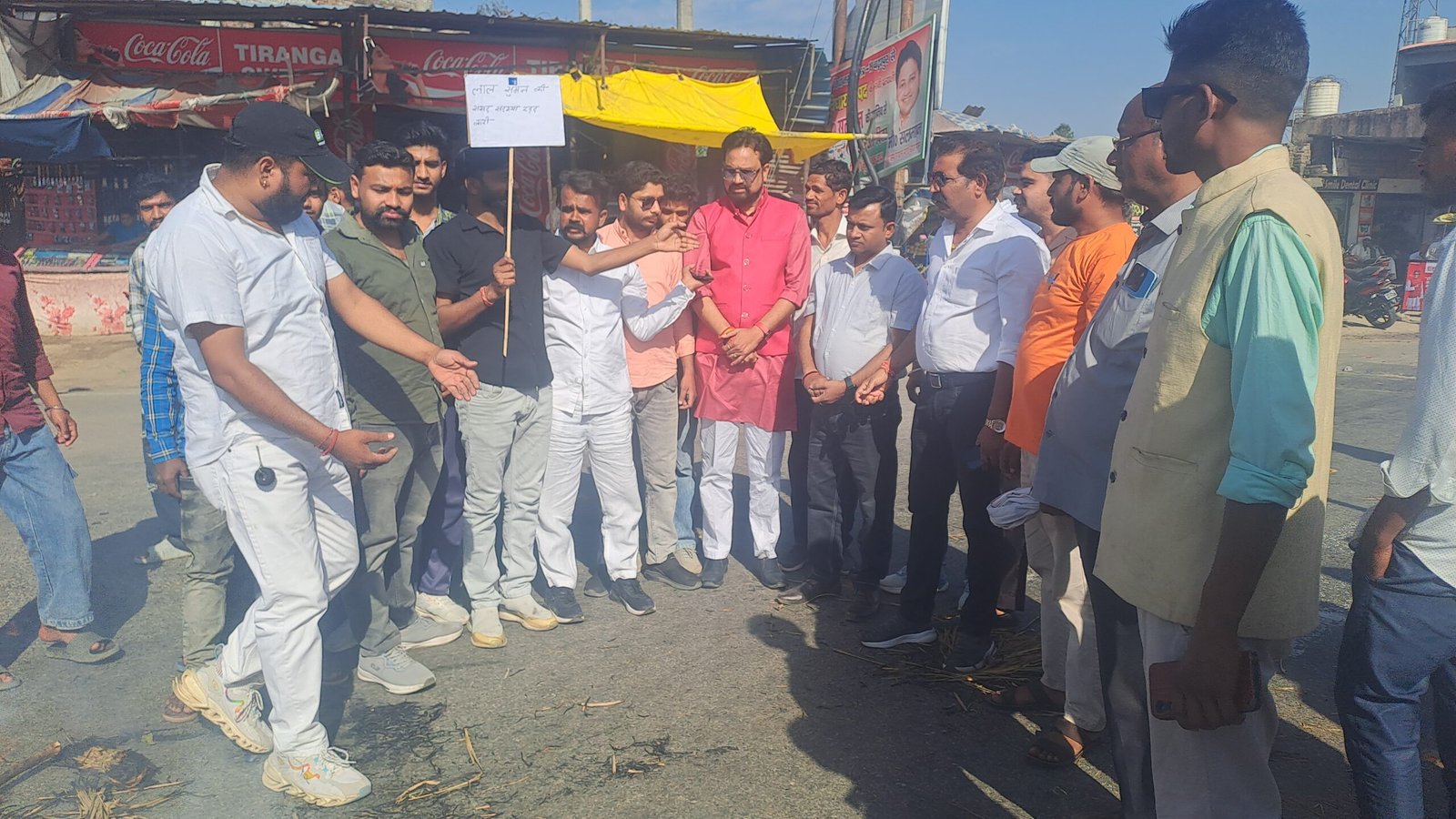 भाजपा व किसान मजदूर संगठन के कार्यकर्ताओं ने भुतपुरी तिराहे पर सपा सांसद रामजीलाल का पुतला फूंका