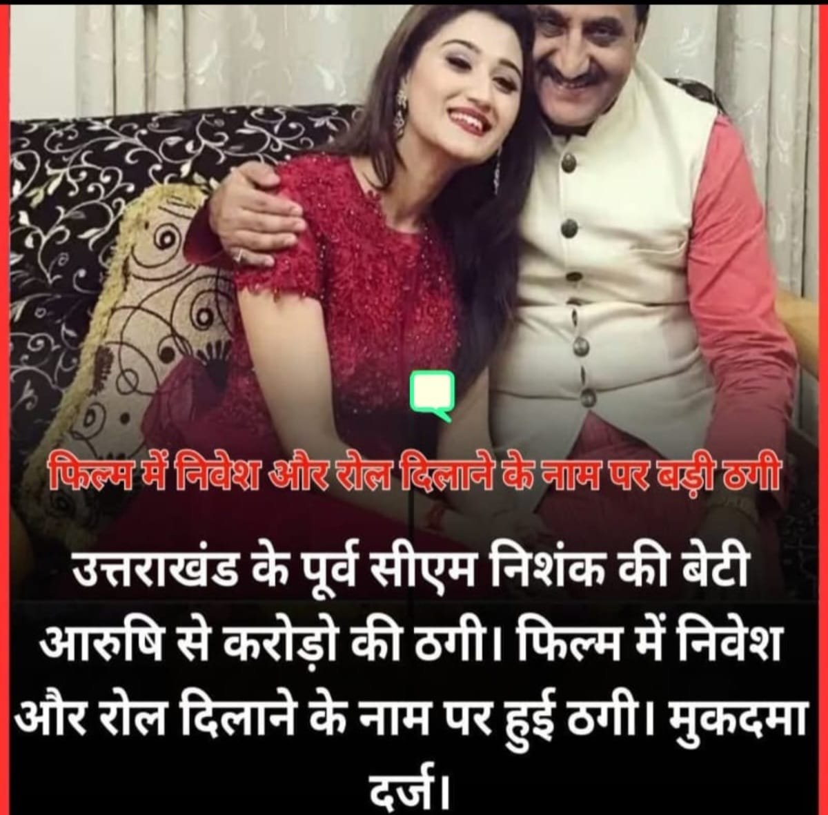 उत्तराखंड के पूर्व सीएम निशंक की बेटी और आरुषि से करोड़ों की ठगी, फिल्म में निवेश और रोल दिलाने के नाम पर हुई ठगी।