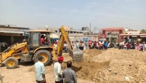 प्राचीन काली माता मंदिर पर व्यवसाइक कॉम्प्लेक्स के लिए खुदवाई गई नीव पर ग्रामीणों का फूटा गुस्सा