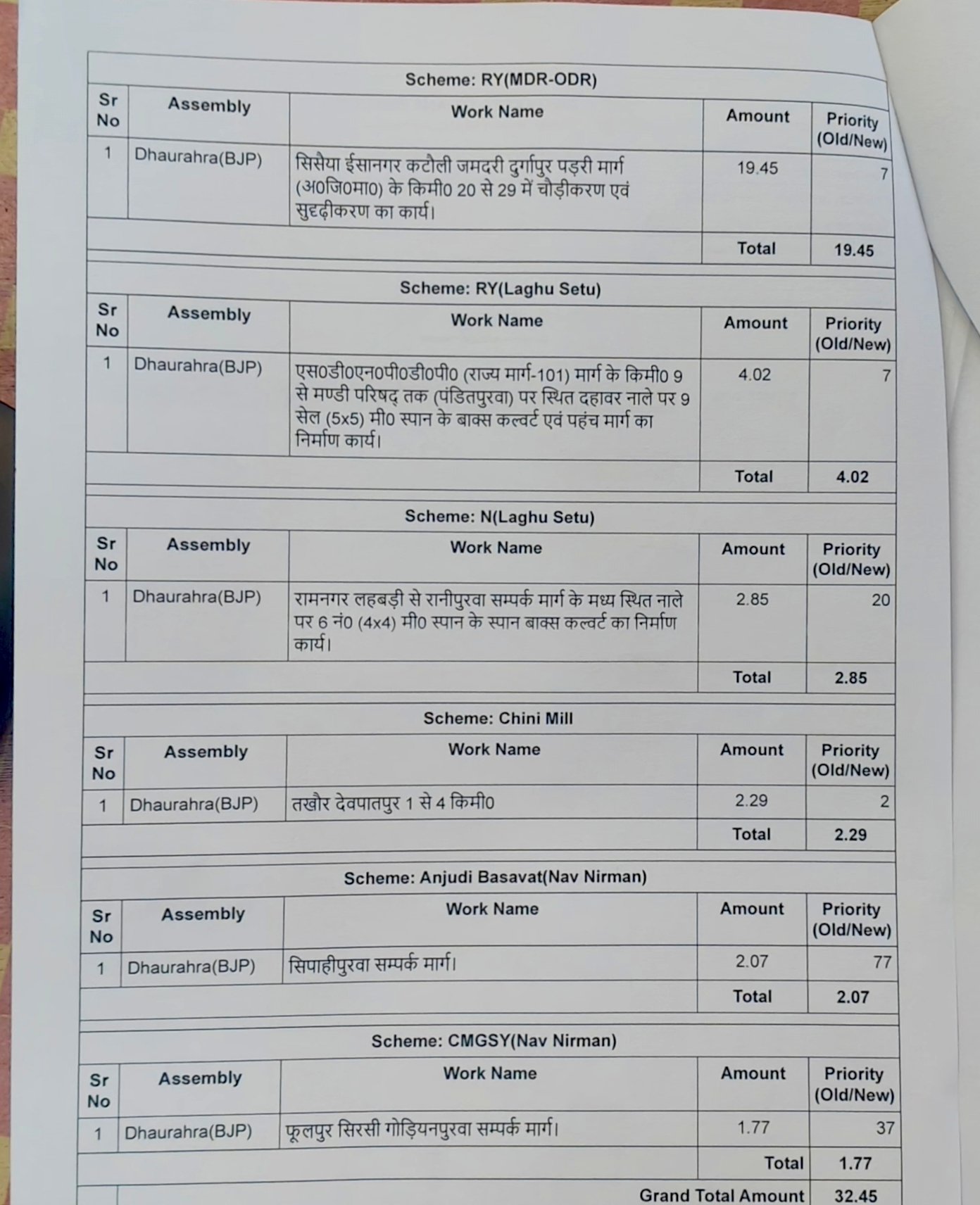 रिपोर्ट आयुष पाण्डेय लखीमपुर खीरी : यूपी : विनोद शंकर अवस्थी की मेहनत रंग लाई आज यूपी की योगी सरकार ने धौरहरा के संपूर्ण विकास के लिए करीब 400 करोड रुपए की परियोजनाएं स्वीकृत की इनमे पीडब्ल्यूडी विभाग की एक दर्जन और सिंचाई विभाग की परियोजनाएं शामिल हैं पीडब्ल्यूडी विभाग की तरफ से करीब 400 करोड़ रूपये की एक दर्जन सड़क मार्ग और छोटे-छोटे पुल मंजूर किए जबकि सिंचाई विभाग ने कटाव निरोधक,चैन लाइजेशन, पुर्नस्थापना /सुद्धरीकरण एवं पुनरोद्धार के कार्य स्वीकृत किए