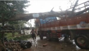 बहराइच में बदला मौसम का मिजाज, आंधी से ट्रक पर गिरा पेड़, हवा में उड़ गया झूला